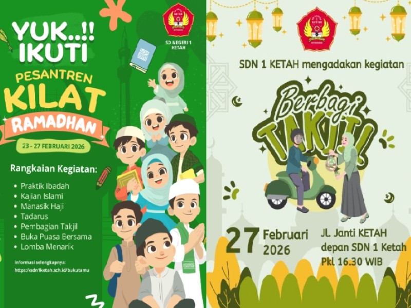 Dalam rangka mengisi Bulan Suci Ramadhan dengan kegiatan yang edukatif dan bermakna, SD Negeri 1 Ketah menyelenggarakan Pesantren Kilat Ramadhan yang dilaksanakan selama lima hari, mulai Senin hingga Jumat, 23–27 Februari 2026.